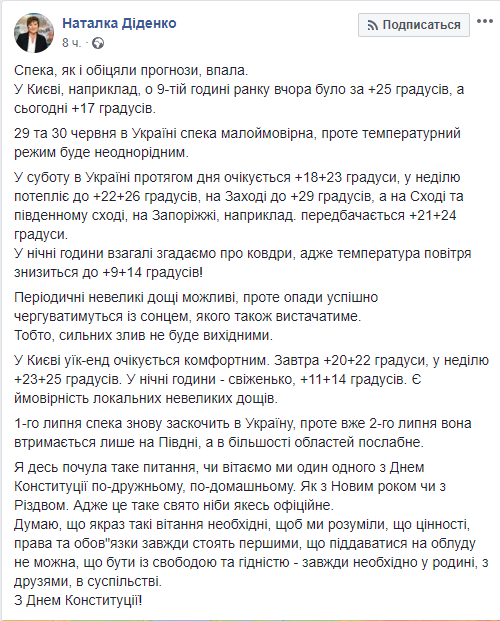 Также мы писали, что синоптики сообщили, какой будет погода в Украине на День Конституции.