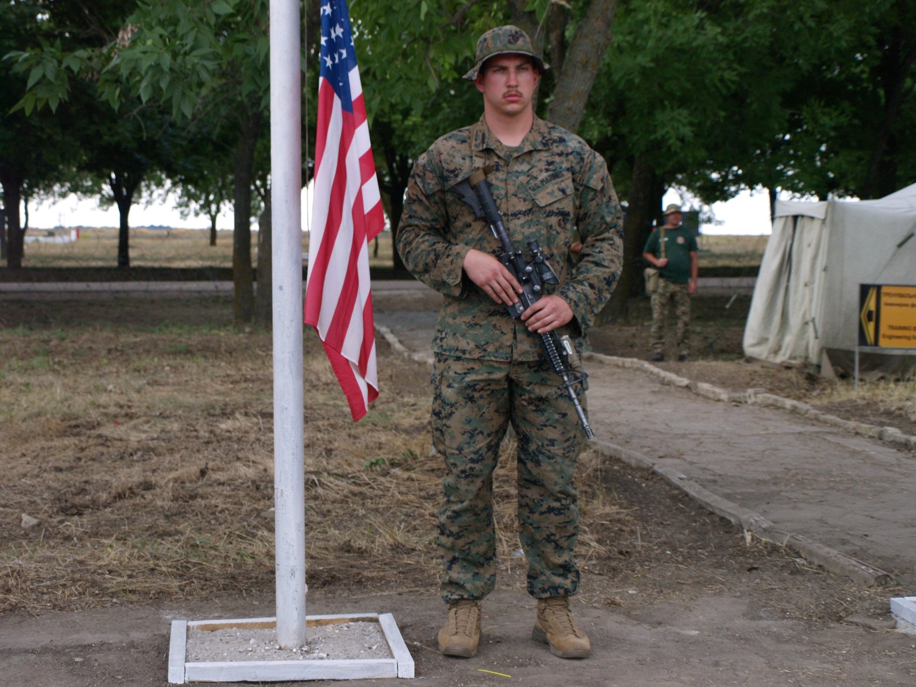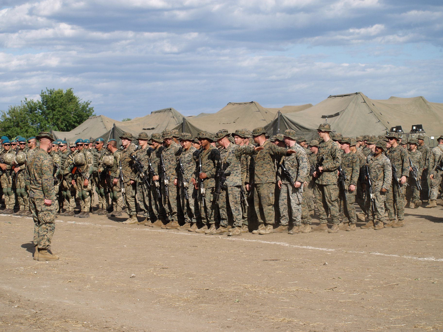 "В Одессе начались Международные учения "Си-Бриз - 2019". В полевом лагере Международных сил состоялось торжественное построение подразделений, которые примут участие в учениях "Си Бриз-2019". На флагштоках подняли флаги Украины, США, Грузии, Молдовы. На этот раз настоящей новацией станет отработка речного элемента ", - говорится в сообщении.