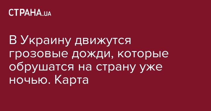 С севера к территории Украины движется область грозовых дождей, которая уже ночью прибудет в северные и западные области страны, а также в столицу. Об этом на своей странице в Facebook сообщила синоптик Наталья Диденко в понедельник вечером.