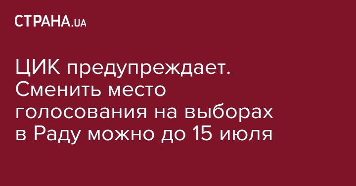 Через две недели, 15 июля, истекает срок, когда украинцы могут сменить место голосования на выборах в Верховную Раду. Об этом на странице в Facebook напоминает пресс-служба ЦИК.
