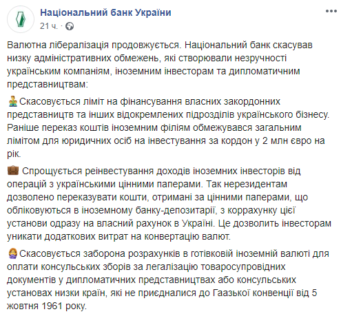 Национальный банк отменил ряд административных ограничений, которые создавали неудобства украинским компаниям, иностранным инвесторам и дипломатическим представительствам. Об этом сообщает пресс-служба НБУ в Facebook.