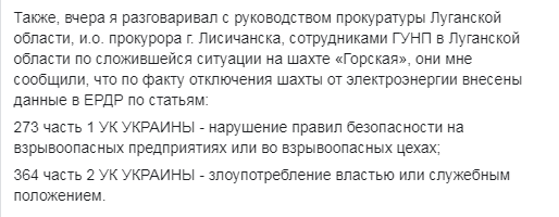 "Сегодня (3 июля) в ночную смену с 00:00 до 2:00 я был на предприятии, провел телефонные переговоры с протестующими горняками (из кабинета директора), выяснил состояние здоровья протестующих, а также ситуацию по предприятию в целом", - написал Лисянский.