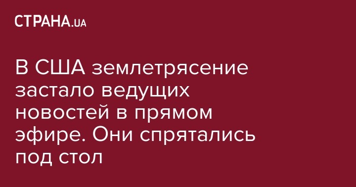 В пятницу вечером, 5 июля, в Лос-Анджелесе произошло сильное землетрясение. Оно застало ведущих новостей американского канала KCAL9 в прямом эфире. Они были вынуждены прервать выпуск и спрятаться под стол.
