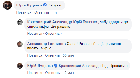 После этого Луценко заявил, что также считает мифом писателя Тараса Прохасько.
