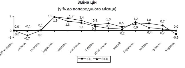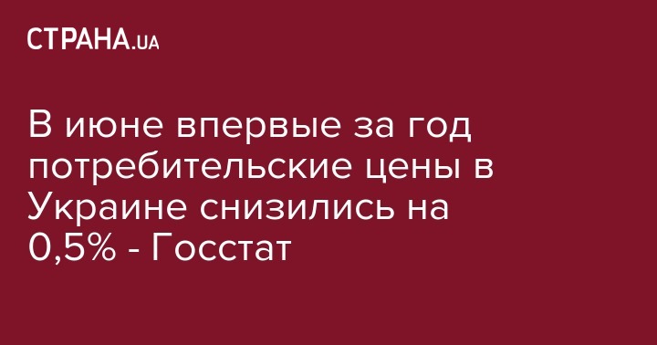Потребительские цены в Украине в июне 2019 года снизились на 0,5% к маю этого года, но в годовом измерении зафиксирована инфляция на уровне 9%. Об этом сообщил сайт Государственной службы статистики Украины во вторник.