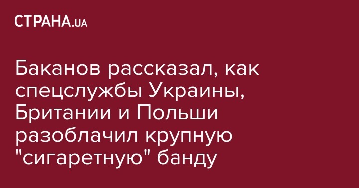 "Службой безопасности Украины вместе с Государственным бюро расследований, Генеральной прокуратурой, таможенной и налоговой службой Великобритании, спецслужбами Польши была проведена операция по обезвреживанию одной из крупнейших преступных групп, которая занималась поставками контрафактных сигарет в страны Европейского Союза", - сказал Баканов.