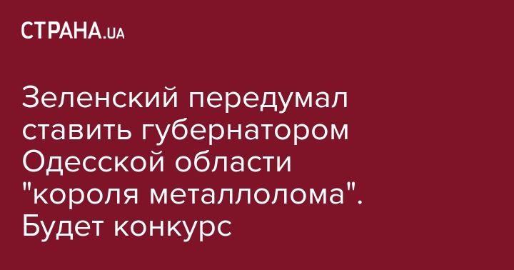 Зеленский передумал ставить губернатором Одесской области "короля металлолома". Будет конкурс