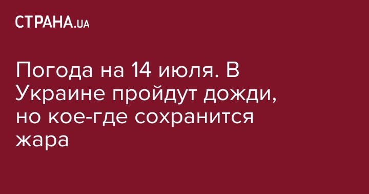 В воскресение, 14 июля, в большинстве регионов Украины пройдут грозовые дожди. Солнечная и теплая погода будет сохраняться в восточных и южных областях. Об этом сообщает пресс-служба Укргидрометцентра