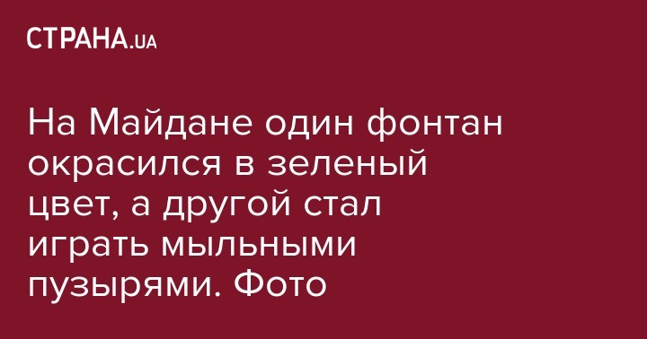 На Майдане один фонтан окрасился в зеленый цвет, а другой стал играть мыльными пузырями. Фото