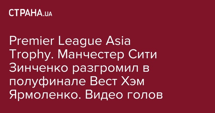 Premier League Asia Trophy. Манчестер Сити Зинченко разгромил в полуфинале Вест Хэм Ярмоленко. Видео голов