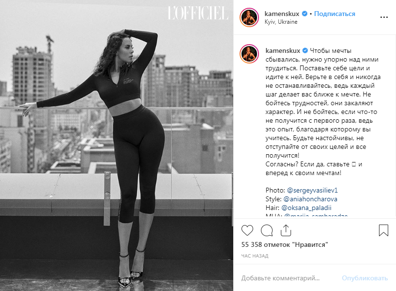 "Чтобы мечты сбывались, нужно упорно над ними трудиться. Поставьте себе цель и идите к ней. Верьте в себя и никогда не останавливайтесь, ведь каждый шаг делает вас ближе к мечте", - написала певица в описании к одному из снимков.