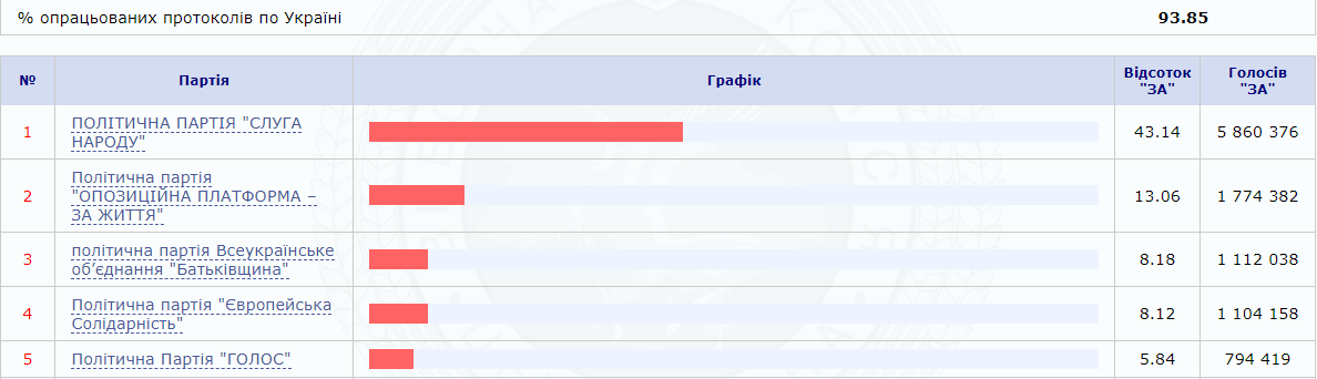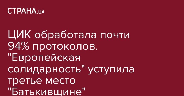 ЦИК обработала почти 94% протоколов. "Европейская солидарность" уступила третье место "Батькивщине"