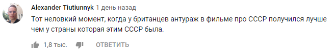 "Тот неловкий момент, когда у британцев антураж в фильме про СССР получился лучше чем у страны которая этим СССР была", - пишут в комментариях.