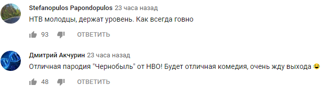 "Отличная пародия "Чернобыль" от HBO! Будет отличная комедия, очень жду выхода".