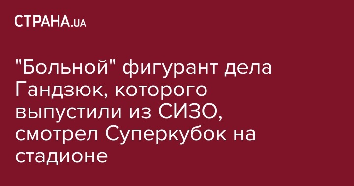 Подозреваемого в сокрытии преступления по делу об убийстве активистки Екатерины Гандзюк Игоря Павловского, отпущенного под ночной домашний арест после диагноза "гипертонический криз", заметили на футбольном Суперкубке в Одессе.