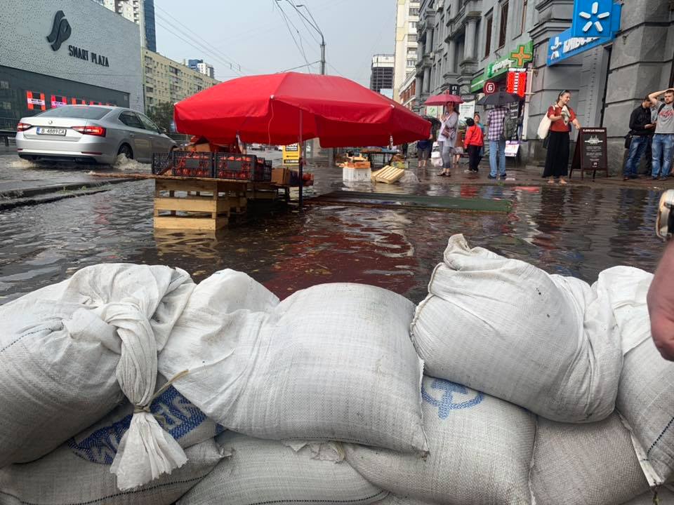 В Киеве после ливня, который прошел сегодня днем, затопило улицы.