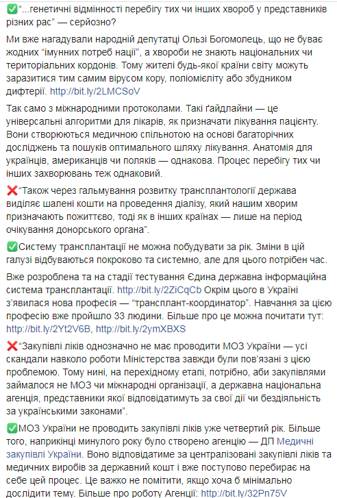 "Мы уже напоминали народному депутату Ольге Богомолец, не бывает никаких" иммунных потребностей нации", а болезни не знают национальных или территориальных границ. Поэтому жители любой страны мира могут заразиться тем же самым вирусом кори, полиомиелита или возбудителем дифтерии.
