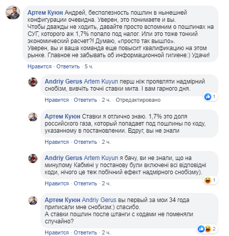 "Я вижу, вы не знали, что на прошлом заседании Кабмина в постановление были включены все соответствующие коды", - написал Герус, отвечая на вопрос эксперта "Консалтинговой группы "А-95" Артема Куюна.
