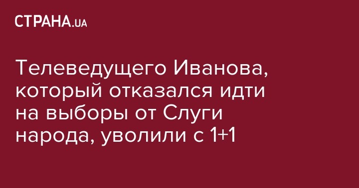 Телеведущего Иванова, который отказался идти на выборы от Слуги народа, уволили с 1+1