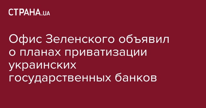 Офис Зеленского объявил о планах приватизации украинских государственных банков