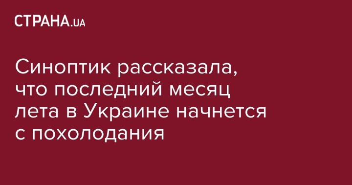 Синоптик рассказала, что последний месяц лета в Украине начнется с похолодания