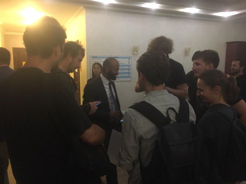13:58 Около четырех десятков человек - сторонников Цымбалюка - заполнили холл суда. Большинство из них, вместе с Алексеем Цымбалюком и его адвокатом Маси Найемом продолжают ожидать начала слушания.