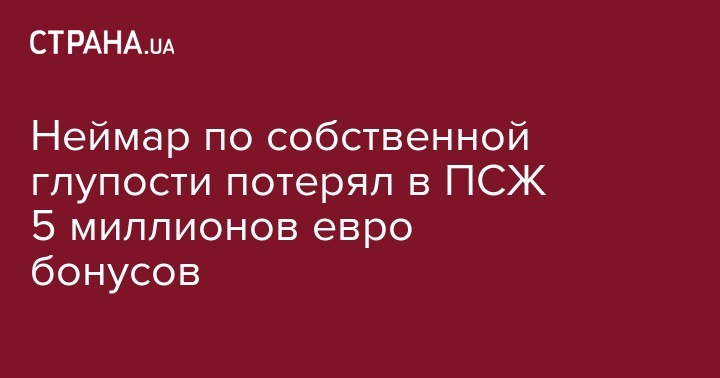Звездный форвард сборной Бразилии и французского ПСЖ Неймар ( с которого сняли обвинения в изнасиловании модели Нажилы Триндаде - Прим.Ред.) остался без очень солидной премии.  Парижский клуб не будет выплачивать бразильцу 5 миллионов евро бонусов, поскольку он не выполнил прописанные в контракте условия.