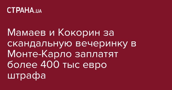 Игрок футбольного клуба "Зенит" Александр Кокорин заплатит 290 тысяч евро штрафа, а его напарник по скандальной вечеринке в Монте-Карло из ФК "Краснодар" Павел Мамаев - 130 тысяч евро. Об этом сообщают Известия.
