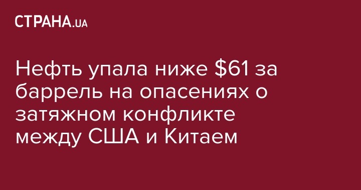 Нефть упала ниже $61 за баррель на опасениях о затяжном конфликте между США и Китаем