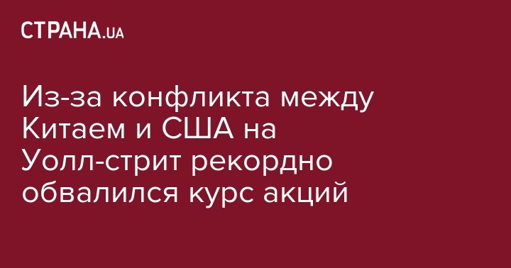 В понедельник, 5 августа,  на Уолл-стрит на фоне обостряющегося торгового конфликта с Китаем произошло самое большое в 2019 году падение курсов акций. Об этом пишет "Радио Свобода".