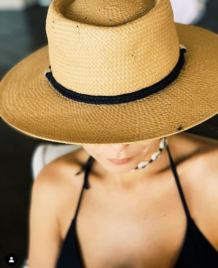 В первый день отпуска она опубликовала фото в шляпе и черном базовом купальнике, но поклонники обсуждали муху, которая оказалась на полях шляпы.