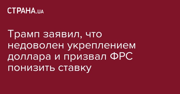 Трамп заявил, что недоволен укреплением доллара и призвал ФРС понизить ставку