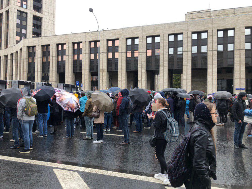 13.49 Несмотря на дождь москвичи идут на митинг и выстраиваются в очередь у рамок металлодетекторов.