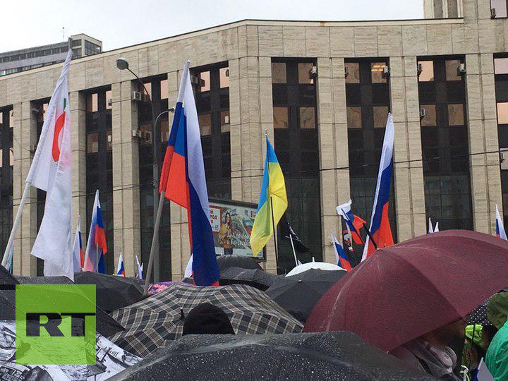 15.09 На митинге среди флагов России кто-то поднял и наш украинский стяг.
