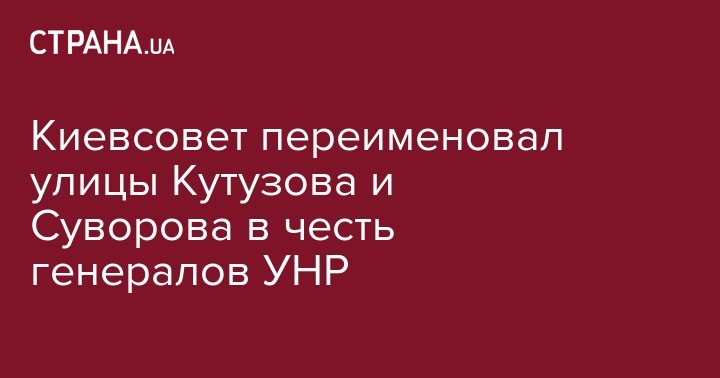 Киевсовет переименовал улицы Кутузова и Суворова в честь генералов УНР