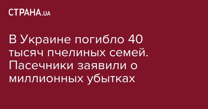 Украинские пчеловоды в 2019 году понесли 120 млн грн убытков из-за отравления пчел пестицидами и ядохимикатами. Об этом сообщила пресс-служба консалтинговой компании Pro-Consulting со ссылкой на данные Союза пасечников Украины.