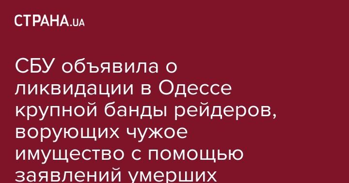 Сотрудники СБУ задокументировали, что с июля 2017 года до августа 2018 на основании заявлений от имени умерших лиц рейдерской группой было совершено более 300 регистрационных действий относительно переоформления недвижимости на всей территории Украины, в том числе в Донецкой, Луганской областях и Крыму.