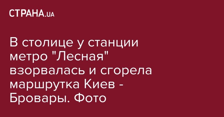 Утром в четверг, 15 августа, в Киеве у станции метро "Лесная" взорвалась и загорелась маршрутка. Об этом сообщает корреспондент "Страны" с места ЧП.