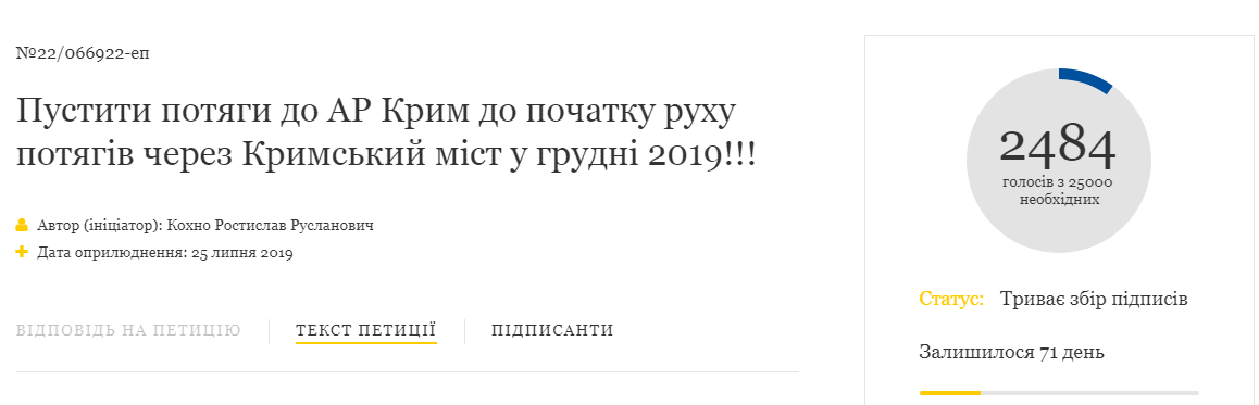 Каждая из них к 15 августа набрала более 2000 подписей из необходимых для обязательного рассмотрения 25000. Для сбора оставшихся остался 71 день.