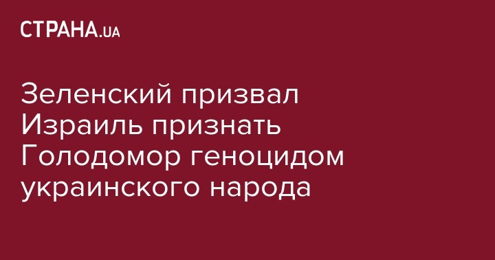 Президент Украины Владимир Зеленский обратился к премьер-министру Израиля Биньямину Нетаньяху с призывом признать Голодомор геноцидом украинского народа. Об этом сообщает агентство "Интерфакс-Украина".