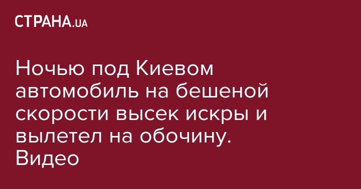 Ночью под Киевом автомобиль на бешеной скорости высек искры и вылетел на обочину. Видео