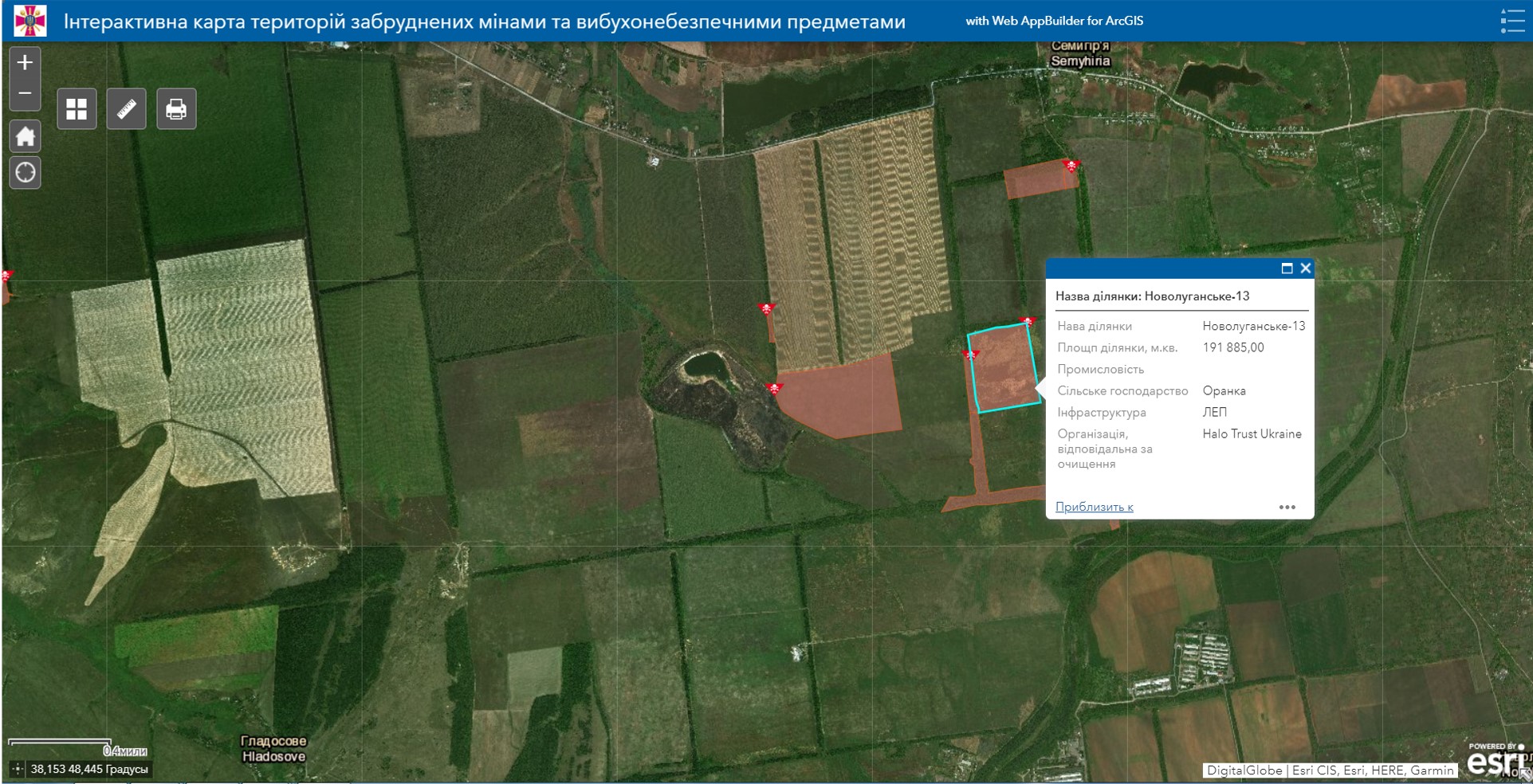Уточняется, что карта создана при содействии Женевского международного центра гуманитарного разминирования и Координатора проектов ОБСЕ в Украине, в рамках реализации плана действий по внедрению инициативы "Партнерство "Открытое Правительство" в 2018 - 2020 годах, утвержденного распоряжением Кабинета Министров от 18 декабря 2018 №1088-г.