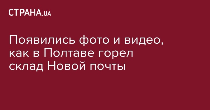 Вечером в среду, 21 августа, в Полтаве загорелся одноэтажный склад компании "Новая почта". Об этом сообщили в Госслужбе по чрезвычайным ситуациям.