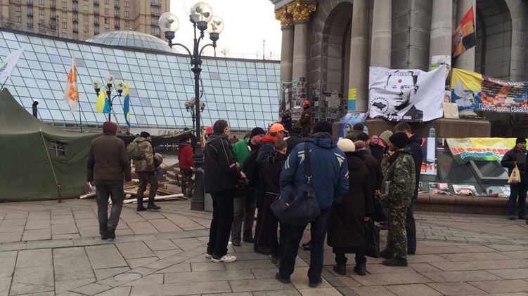Оперативные новости с Майдана. На площади стоит одна палатка. Протестующие в количестве 50 человек крутятся возле стеллы. Подхожу. Интересуюсь, чего требуют.
