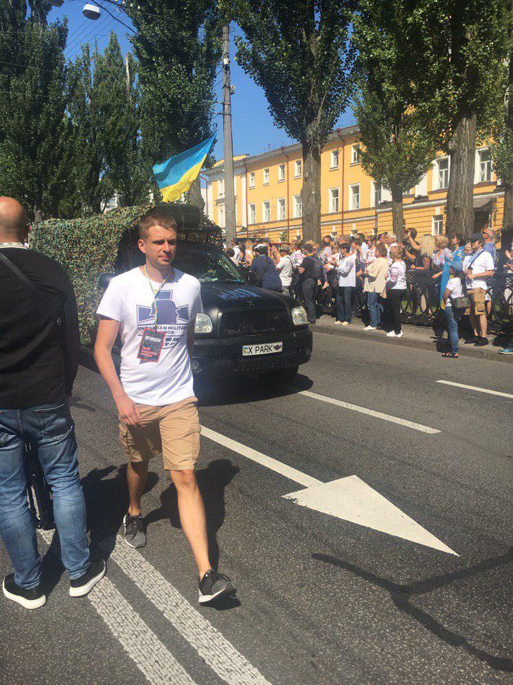 11:36 Марш ветеранов АТО стартовал под аплодисменты собравшейся публики. Во главе колонны - два внедорожника, закамуфлированных зеленой сеткой, а также матери погибших воинов. Движение колонны координируют представители С14. В частности, среди них замечен Андрей Медведько, который обвиняется в убийстве журналиста и публициста Олеся Бузины