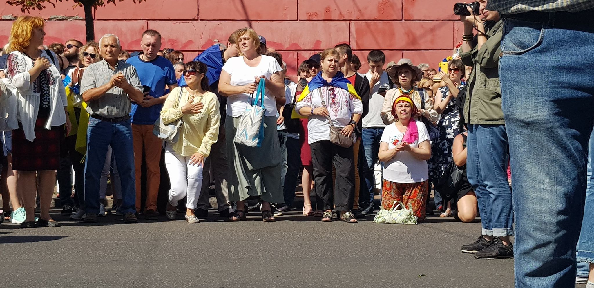 Во время остановки один из участников колонны - в числе тех, кто идет в группе ветеранов АТО из Донецкой области, прокричал кричалку "Путин х@@@о". Ее поддержали несколько собравшихся зрителей. Напомним, что в колонне присутствуют маленькие дети.