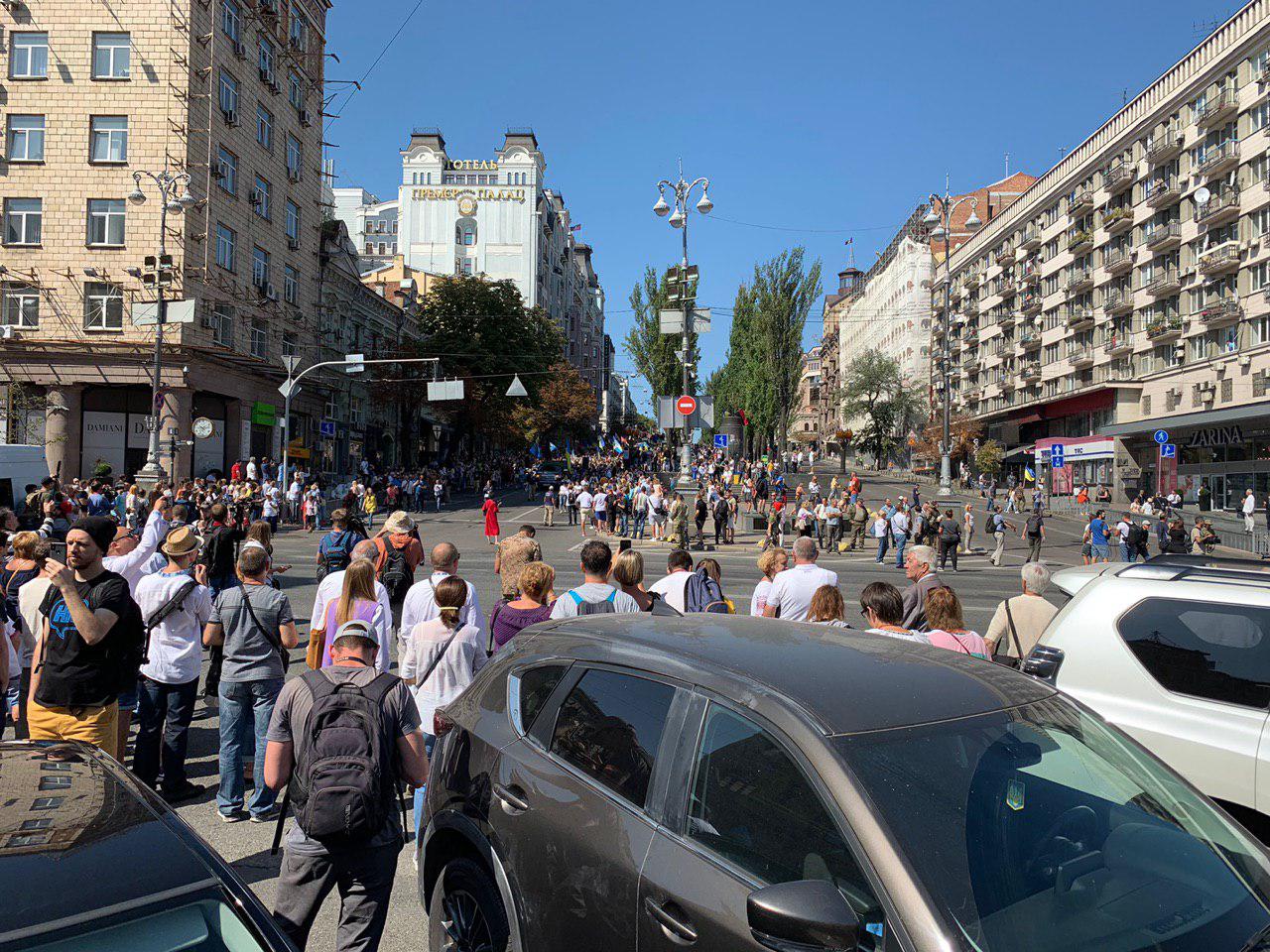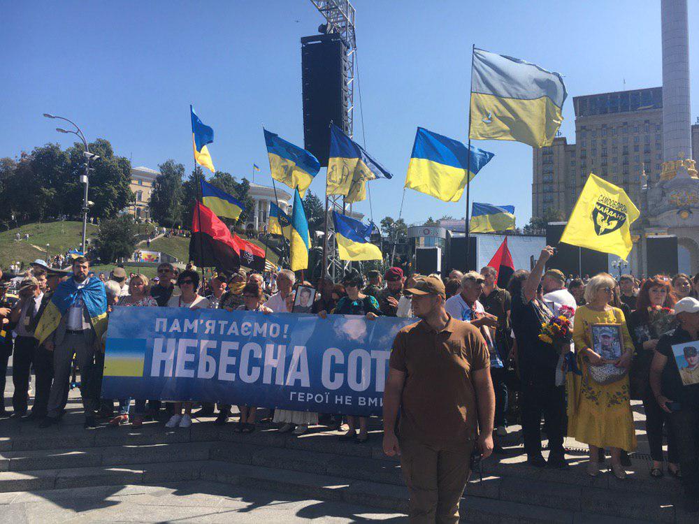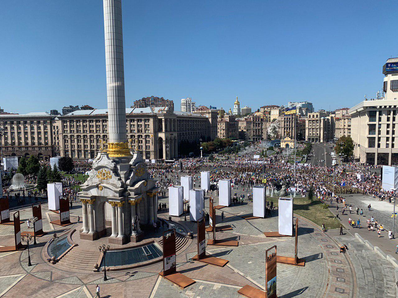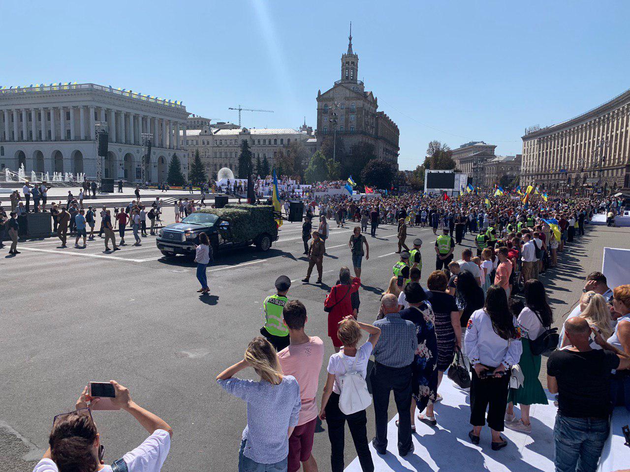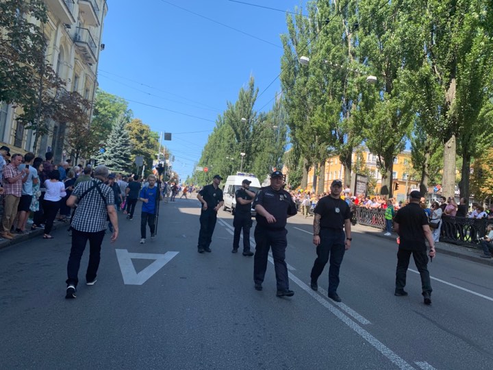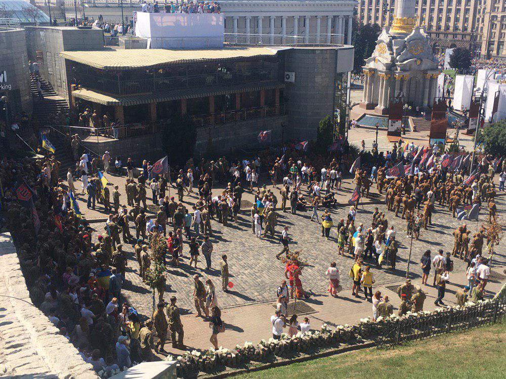 С 09:30 на Майдане проходит официальная Хода гідності с участием Владимира Зеленского. Это альтернатива военным парадам с техникой, которые стали проводить при Петре Порошенко. У Зеленского их назвали устаревшими и недостаточно европейскими.