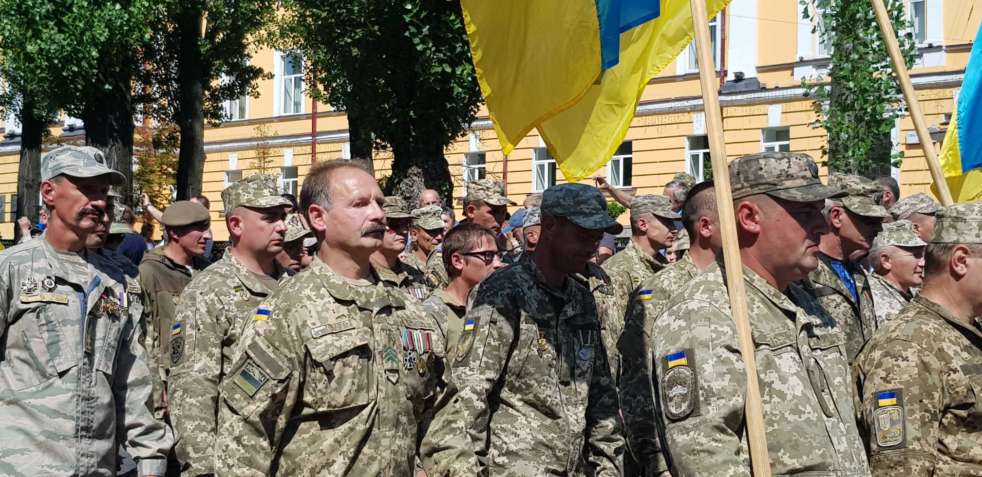 10:58 Тем временем в парке Шевченко начинается Марш защитников Украины. Сейчас возле парка много людей в военной форме, они составляют порядка 70% от общей толпы, да и самих участников акции тоже стало порядка 2 тысяч. Немало грузинских военных, которые между собой обсуждают вопрос получения украинского гражданства. Также собравшиеся растянули большой украинский флаг