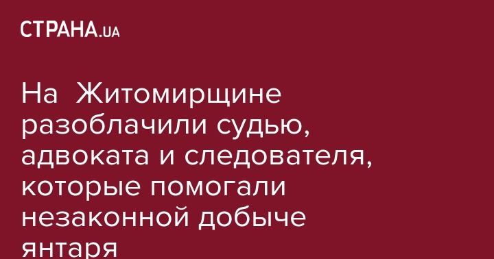 В Житомирской области разоблачили судью Олевского районного суда и его сообщников, которые способствовали незаконной добыче янтаря. Об этом сообщается на странице прокуратуры Киевской области в соцсети.