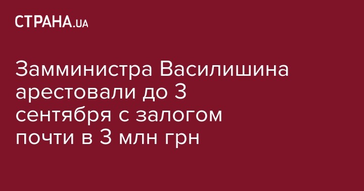 Замминистра Василишина арестовали до 3 сентября с залогом почти в 3 млн грн